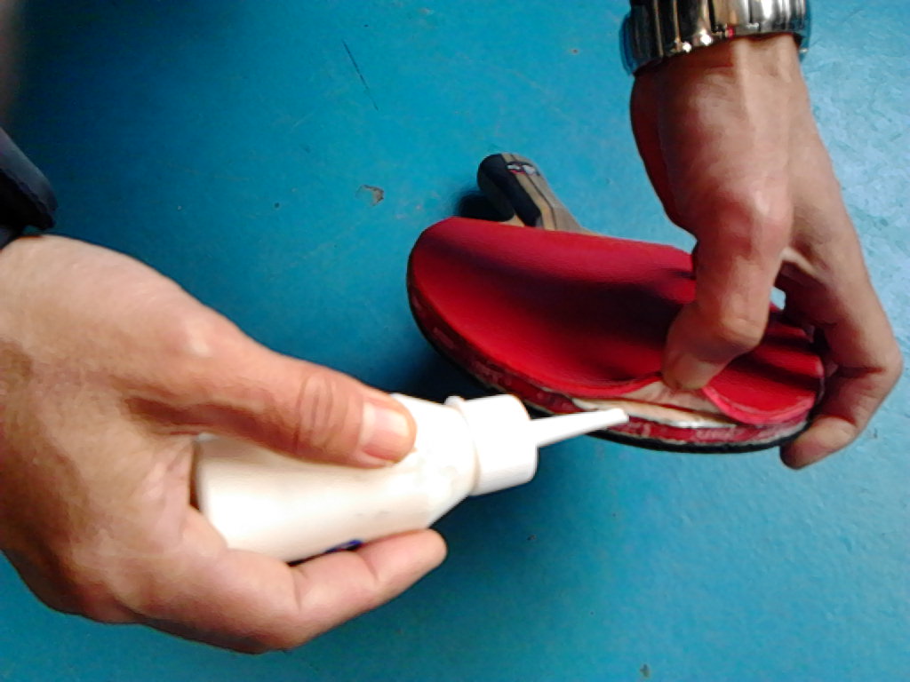 2、球拍的粘贴:底板/胶皮或 胶皮/海绵的粘贴,一般只要在两边各涂刷一次胶,晾5-10分或吹热风1-2分,